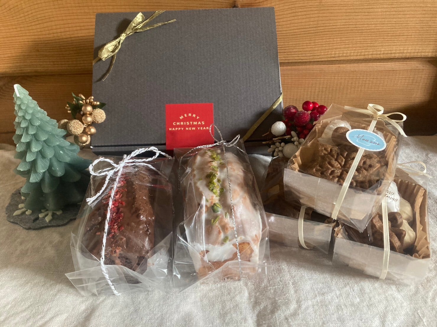 ミニパウンドケーキ2種と、ホリデークッキーセットの詰め合わせになります。