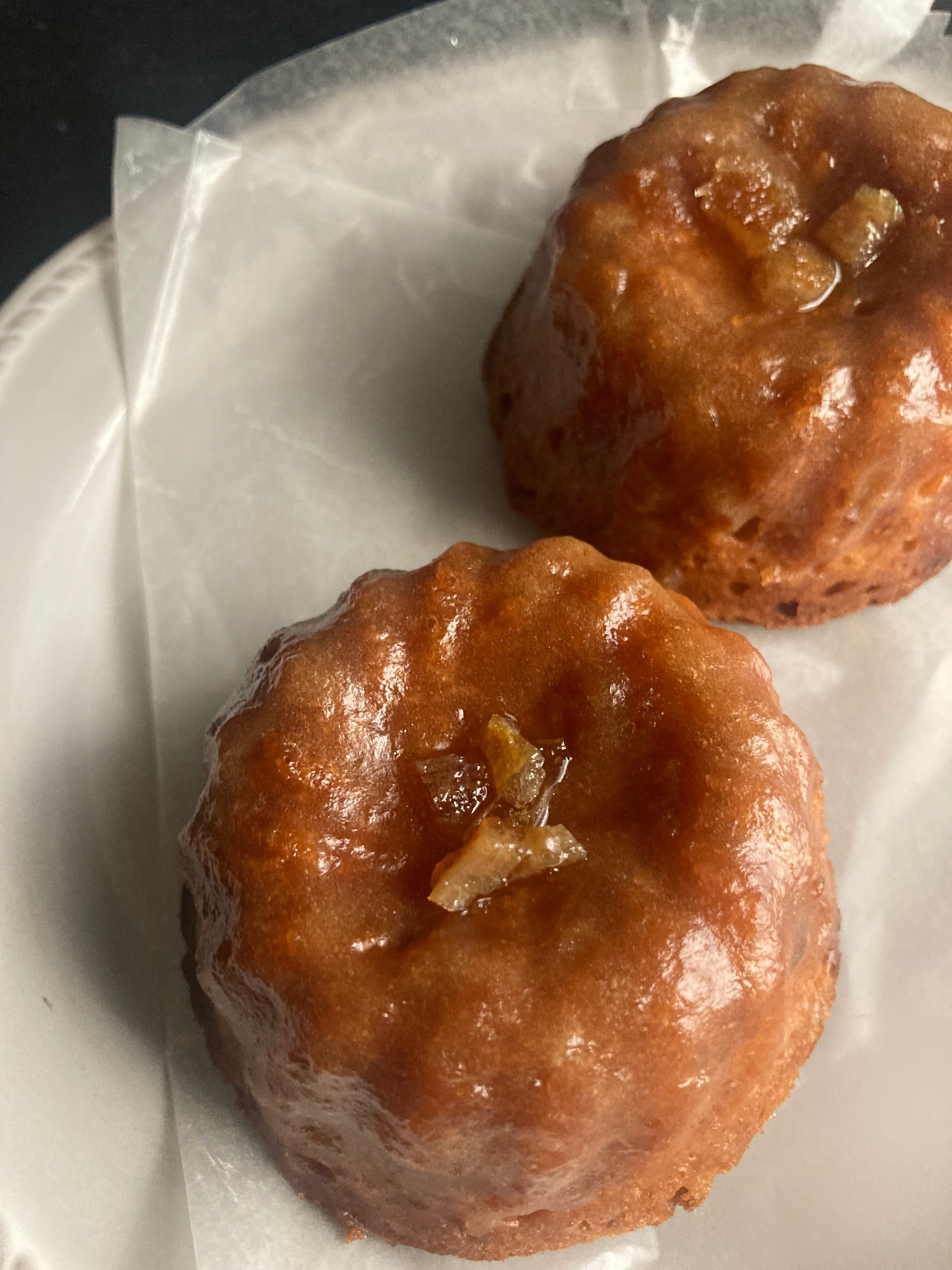 レモンピールを生地に、表面にレモンシロップをうってレモンアイシングでグラサージュしました。